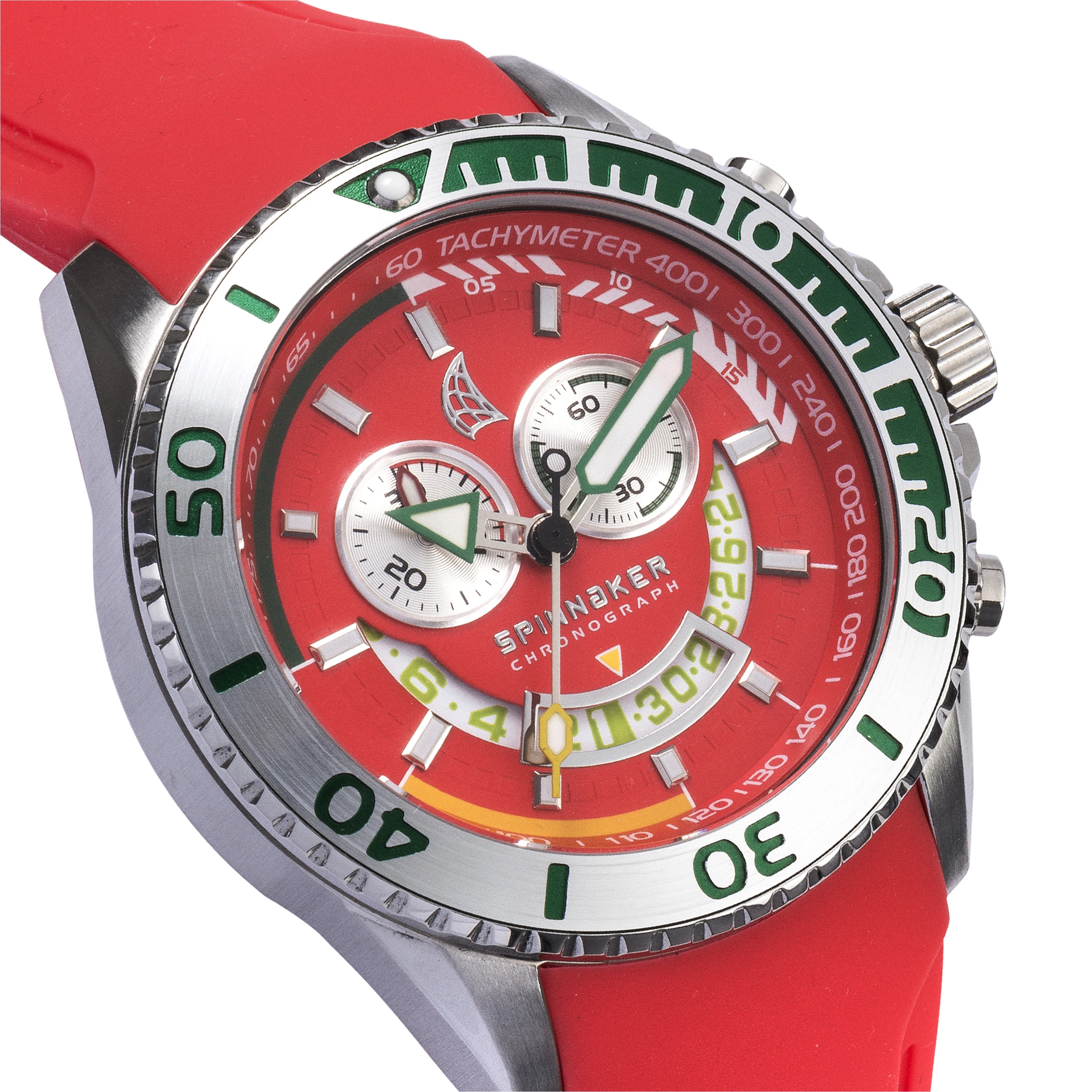 Tervezés: Versenyzésre tervezett technikai óra, világító indexekkel. A gyűrű belső része Tachymeter, a két kisebb számlapon Chronograph, mely eltelt másodpercet és percet jelez ki 30 perces kiosztásban.