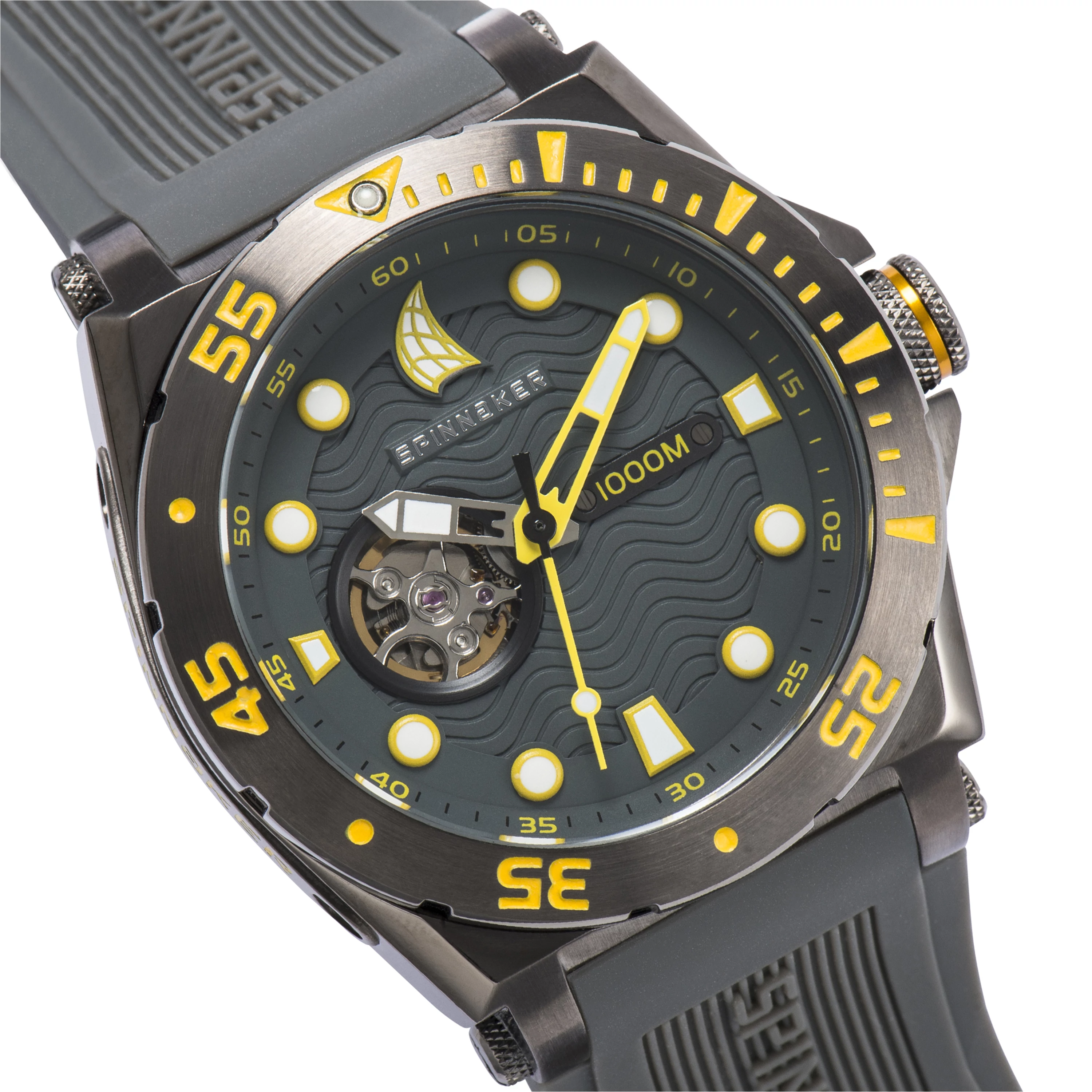 Az Overboard kollekció: Az órát úgy tervezték, hogy ellenálljon a 100 ATM nyomásnak, ami a víz felszínétől számított 1000 méteres mélységet jelenti. Szerkezet: Japán SEIKO 24 köves szerkezet dátum kijelzéssel. OpenHeart tervezésének köszönhetően a szerkezet a számlapon keresztül is látható. Tervezés: Hullámokkal díszített hátlap, világító mutatók és OpenHeart 9 óránál. Tok: 46 mm átmérőjű 316L rozsdamentes acél tok, keményített ásványi lencse, és egyirányba tekerhető aluminium búvár bezel. professzionálisan használható Helium szelep. 100 ATM-es vízállóság. |